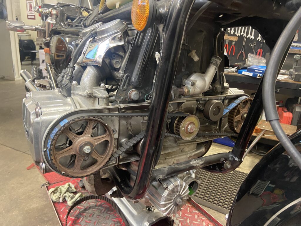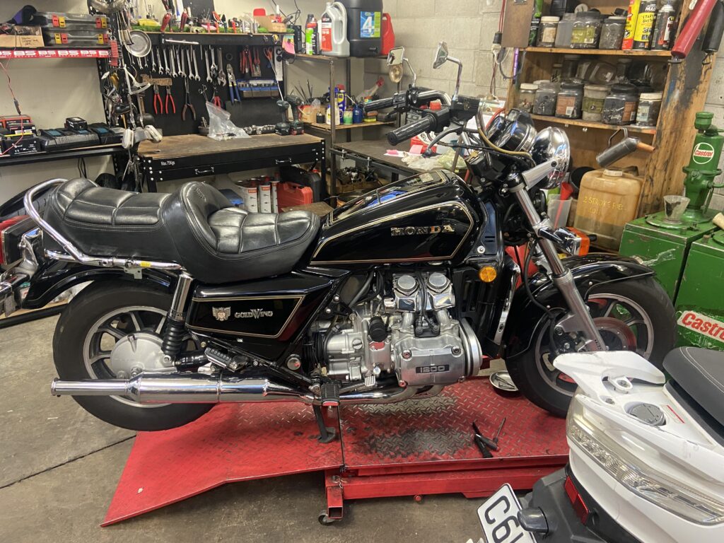 Richard brought his Goldwing into work to get the timing belts replaced. It was a relatively straightforward job, just the thought that if I set the timing wrong the engine could be damaged made it a little nerve racking. Fortunately it all worked out well. It still needs a new choke cable, after 40 years the original has seized up. That’s a job for another day.